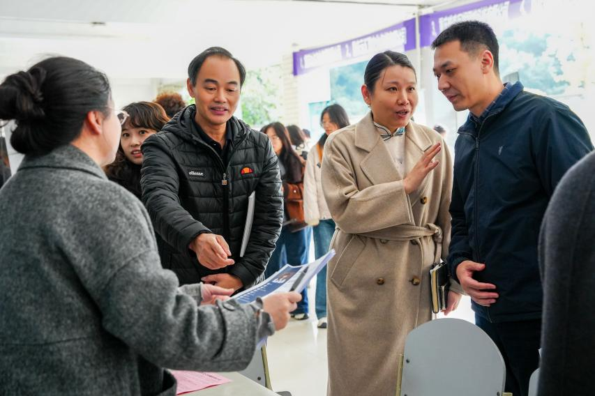 双选会现场气氛热烈,秩序井然。数字技术与设计学院党总支书记彭海深教授、院长谢永教授、招生就业处处长邓小龙老师、团总支书记吴艾佳书记、学管科科长朱文昊老师以及毕业班思想政治辅导员亲临现场指导,与用人单位代表及毕业生们进行深入交流,细致了解招聘市场最新动向与毕业生求职现状,为其精准导航。